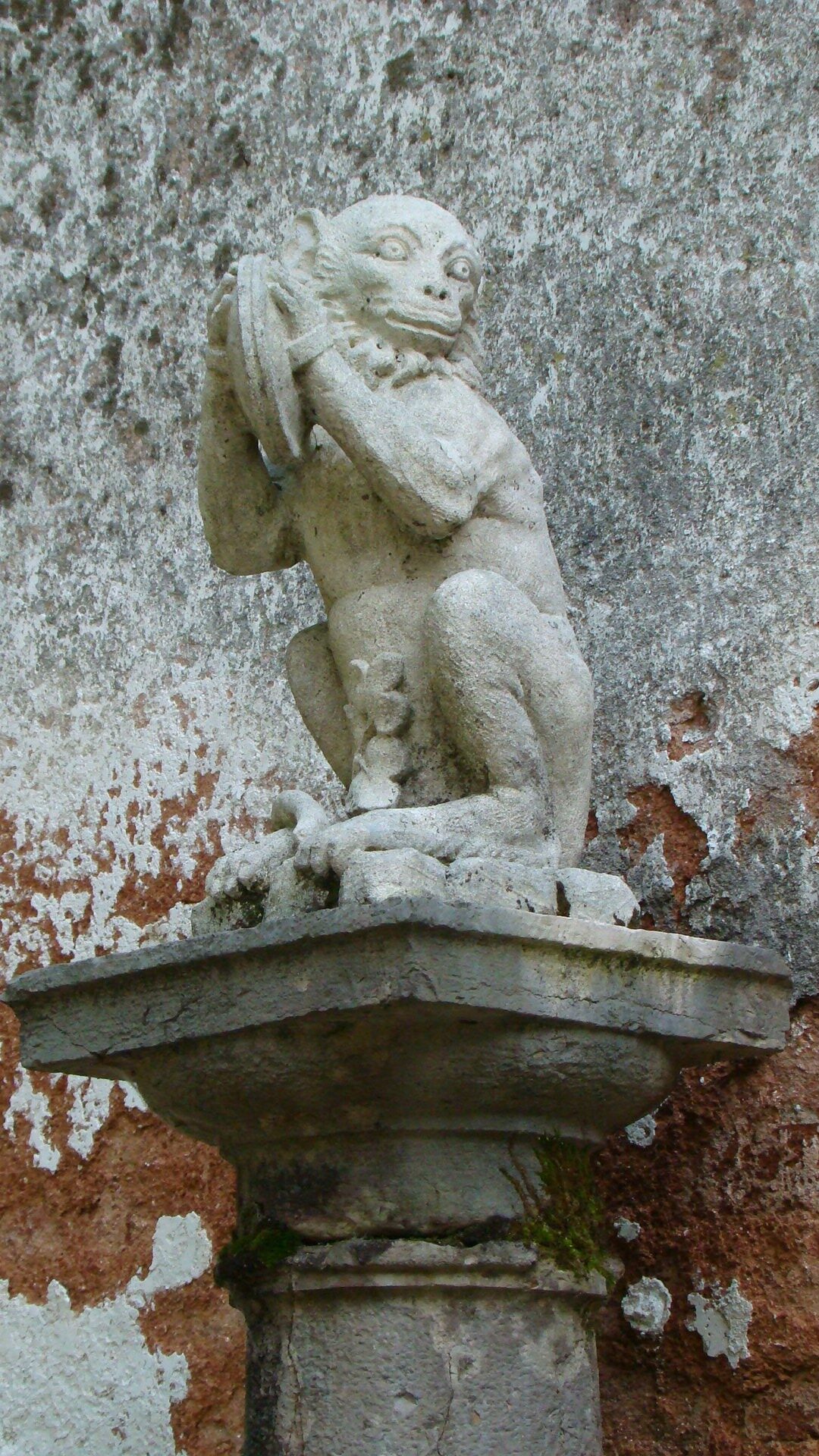 Opmerkelijk in het gehele park zijn de talrijke standbeelden van dieren en realistische of sprookjesachtige figuren, merkwaardige ‘dwergen’ en vooral de ‘muzikale aapjes’. We vinden zowaar ‘een heel orkest van aapjes’ die klaar zijn voor hun orkest in de tuin, een plezier voor kinderen die de tuin bezoeken. Het zijn bizarre verschijningen, die wellicht hun oorsprong vonden bij de bekende componist Marcello die in de loop van de geschiedenis op het domein woonde en die de mode van de tijd volgde. In andere beelden van Ca’ Marcello komen verschillende oude mythen tot leven, die herinneren aan morele deugden, ondeugden en onmogelijke liefdes, in een verwevenheid van fascinerende verhalen en onsterfelijke personages. Bij de ingang waakt de sterk bewapende Hercules, in het park in Engelse stijl ontmoet je Diana, de onbetwiste dame van het bos, en in de tuin in Italiaanse stijl zijn er vier harmonieuze mythologische voorstellingen, van Apollo en Marsyas, Zephyrus en Flora.