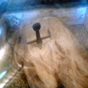Ter bescherming tegen dieven en vandalen is het zwaard nu beschermd door een koffer, maar tot het begin van de twintigste eeuw was het alleen overdekt met een metalen rooster.