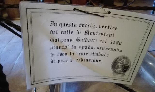 Een jaar later sterft Galgano en wordt naast zijn zwaard begraven. En meer dan achthonderd jaar later staat het zwaard daar nog steeds, als symbool van een onvergankelijke bekering. Getuige hiervan de inscriptie “In terram pro crucem spatam fixit”.