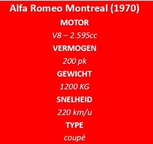 De Alfa Romeo Montreal is een van de meest intrigerende en eigenzinnige sportwagens die het Italiaanse merk ooit heeft gebouwd. Met zijn opvallende design, geavanceerde techniek en relatief korte productieperiode heeft de Montreal een bijna mythische status verworven onder autoliefhebbers. Hoewel hij bij zijn introductie gemengde reacties kreeg, wordt de Montreal vandaag de dag beschouwd als een icoon van Italiaanse autokunst uit de jaren zeventig.