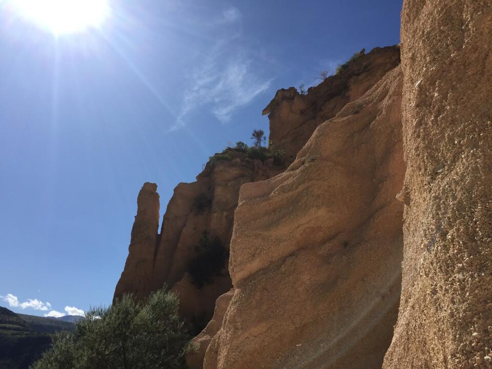 Het hoogtepunt van de wandeling is zonder twijfel het moment waarop je uit het bos stapt en oog in oog komt te staan met de roodkleurige torens en pinakels van Lame Rosse. Deze formaties zijn ontstaan door eeuwenlange erosie van zand, grind, klei en silt, waarbij wind en regen het zachte gesteente hebben uitgesleten tot bizarre vormen. De contrasten tussen het rode gesteente en de blauwe lucht zijn adembenemend en maken het gebied tot een paradijs voor fotografen.