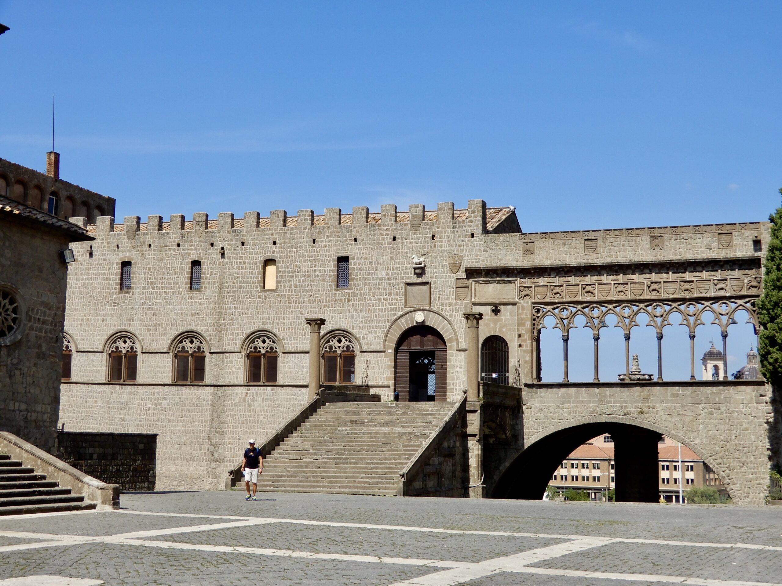 Aan een groot plein midden in Viterbo ligt naast de dom het Palazzo dei Papi. Hoezo is er een pauselijk paleis in die stad, vijftig kilometer ten noorden van Rome? Welnu, al in de vroege Middeleeuwen kwam het geregeld voor dat pausen Rome moesten ontvluchten omdat ze daar hun leven niet veilig waren. Rond pauselijke gebouwen speelden zich soms complete belegeringen en veldslagen af.