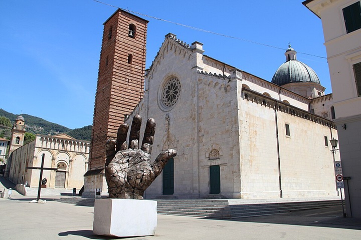 Het centrale plein van Pietrasanta is een openluchtmuseum op zich. Rondom de Duomo di San Martino, met zijn karakteristieke zwart‑witte gevel, staan moderne sculpturen die regelmatig wisselen. Internationale kunstenaars krijgen hier een podium, waardoor het plein telkens een nieuwe uitstraling krijgt.