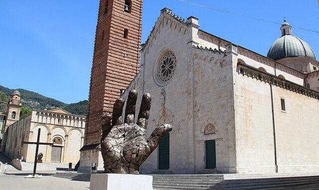 Het centrale plein van Pietrasanta is een openluchtmuseum op zich. Rondom de Duomo di San Martino, met zijn karakteristieke zwart‑witte gevel, staan moderne sculpturen die regelmatig wisselen. Internationale kunstenaars krijgen hier een podium, waardoor het plein telkens een nieuwe uitstraling krijgt.