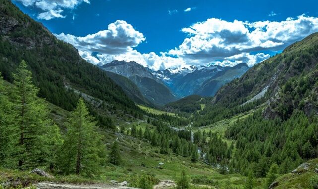 Het mooie dal is omringd door vier massieven, Monte Bianco, Cervino, Monte Rosa en Gran Paradiso, het antiekste Nationaal park van Italië.