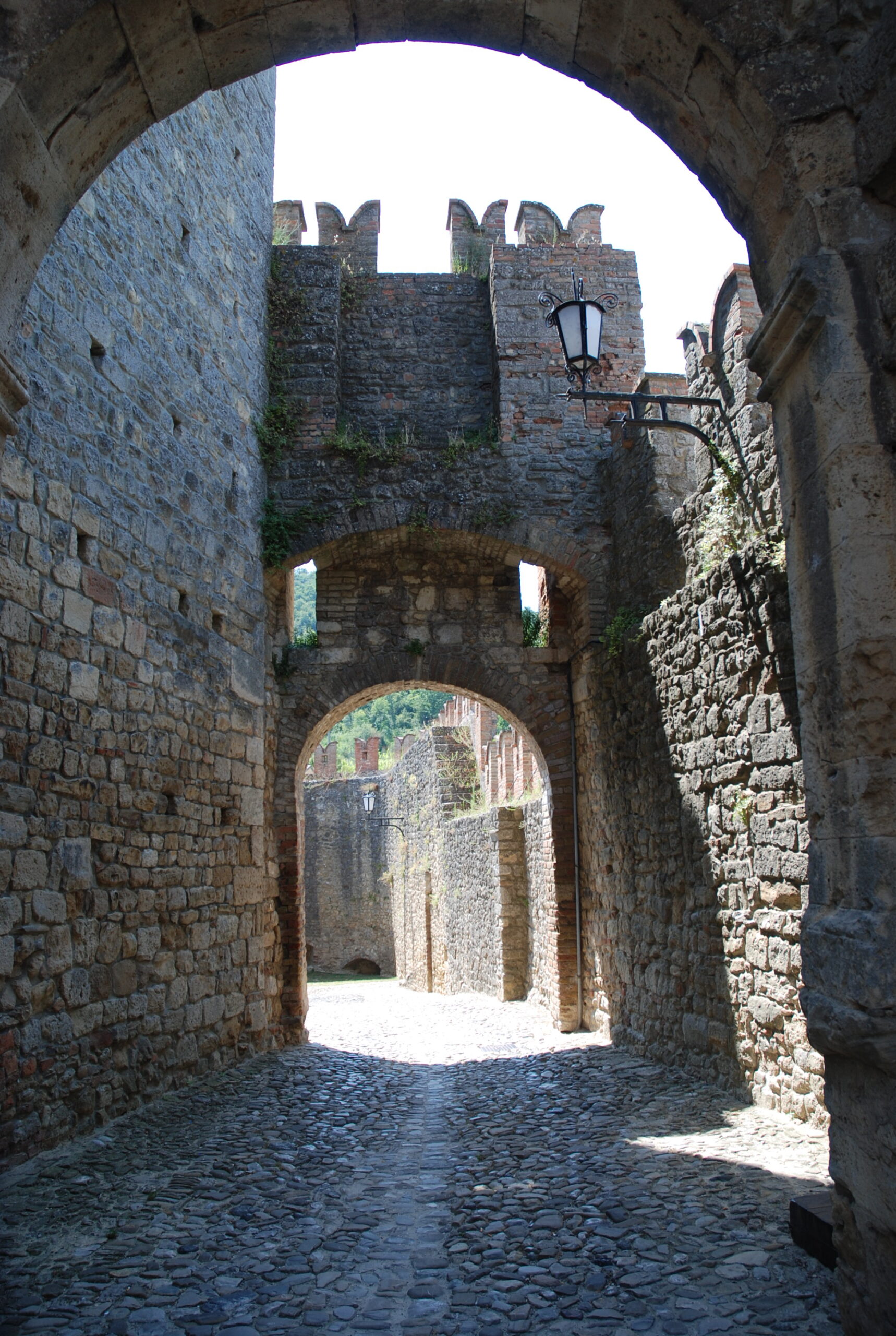 Niet ver van Castell’Arquato, waar ik eerder over schreef, ligt Vigoleno. Zelfs op een gedetailleerde kaart niet meer dan een piepklein stipje. Wat is dit eigenlijk, een kasteel met een paar verdwaalde huizen of een miniatuurstadje met een kasteel? Beide antwoorden zijn goed. Het is een typisch voorbeeld van een Italiaanse borgo (burg, burcht), een versterkte plaats. Vigoleno is net zo bijzonder als het klein is, want het lijkt zo goed als ongerept uit de Middeleeuwen aan ons nagelaten.
